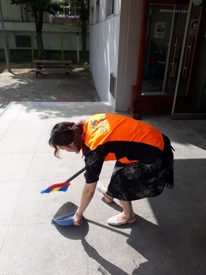 내용: 체육관 실내 바닥청소 및 입구먼지제거 쓰레기분리수거
