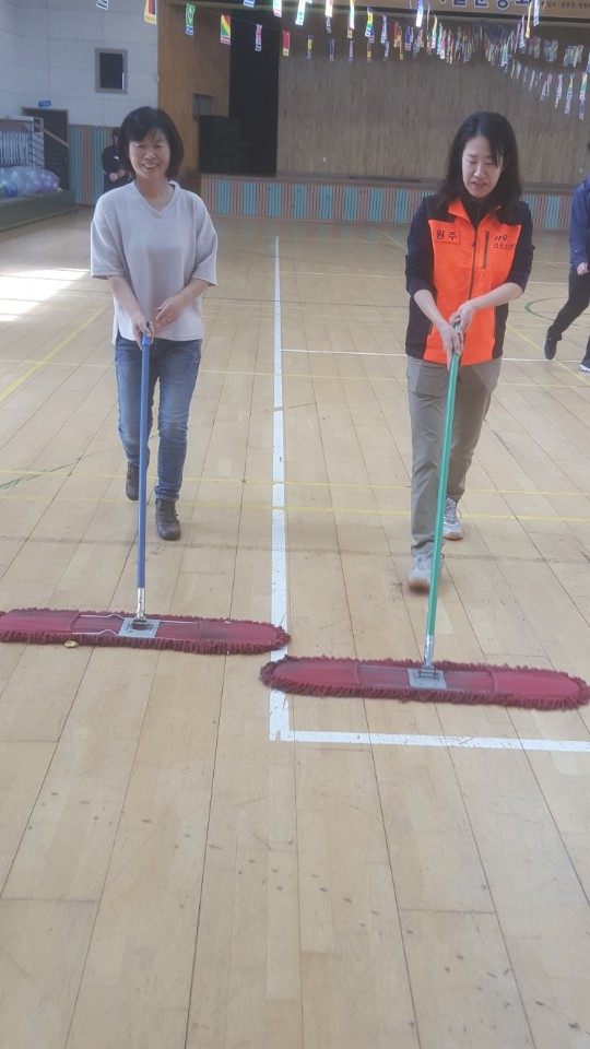 내용:체육관실내 바닥청소 및 입구 먼지 제거 쓰레기분리수거
