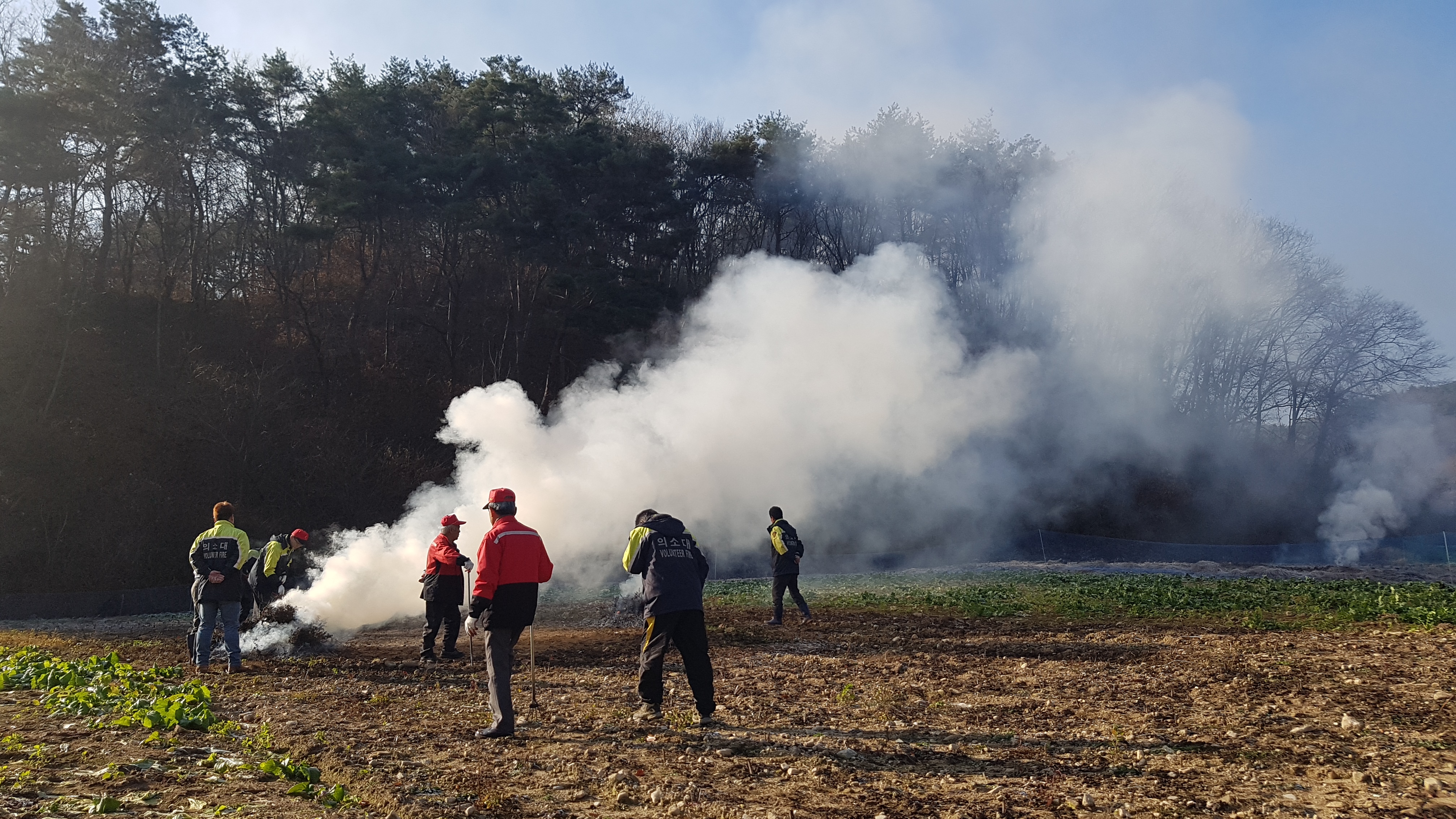 흥업남성의용소방대"대안3리 마을 논.밭두렁 공동 소각" 주변 경계 활동