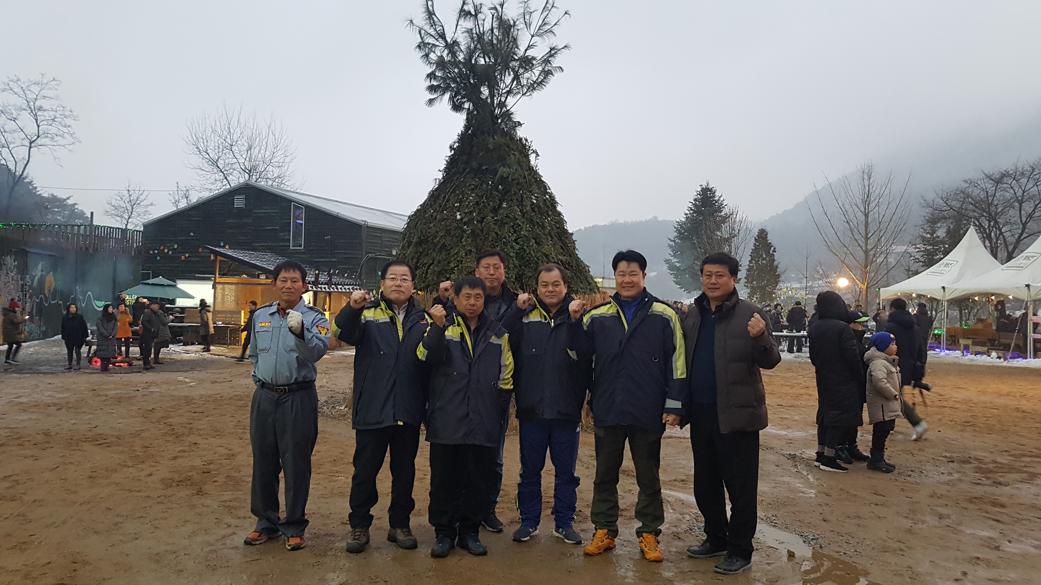 두 눈을 크게 떠고 주변 위험물 비취되어 있는 장소와 달집 설치되어 있는