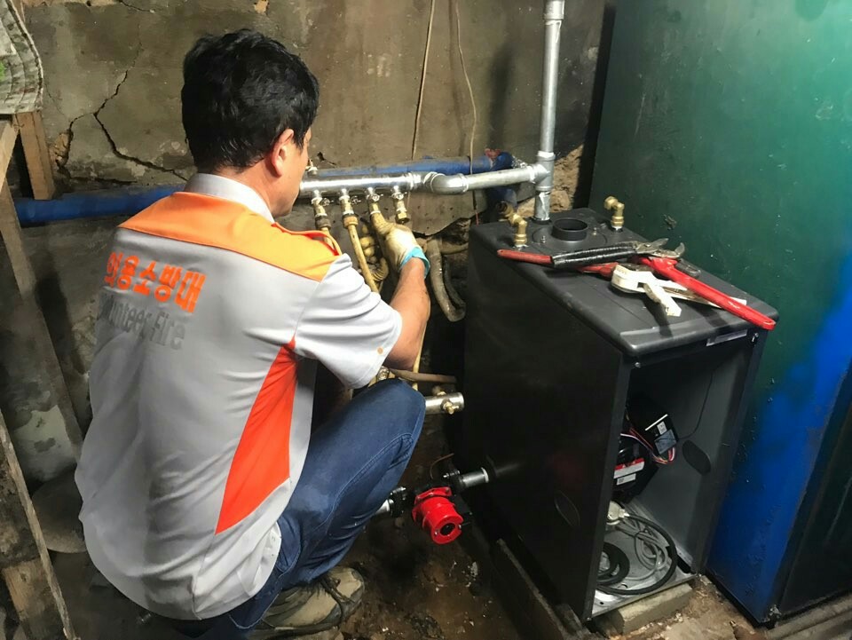 원주남성의용소방대 : 저소득층 보일러 교체 봉사