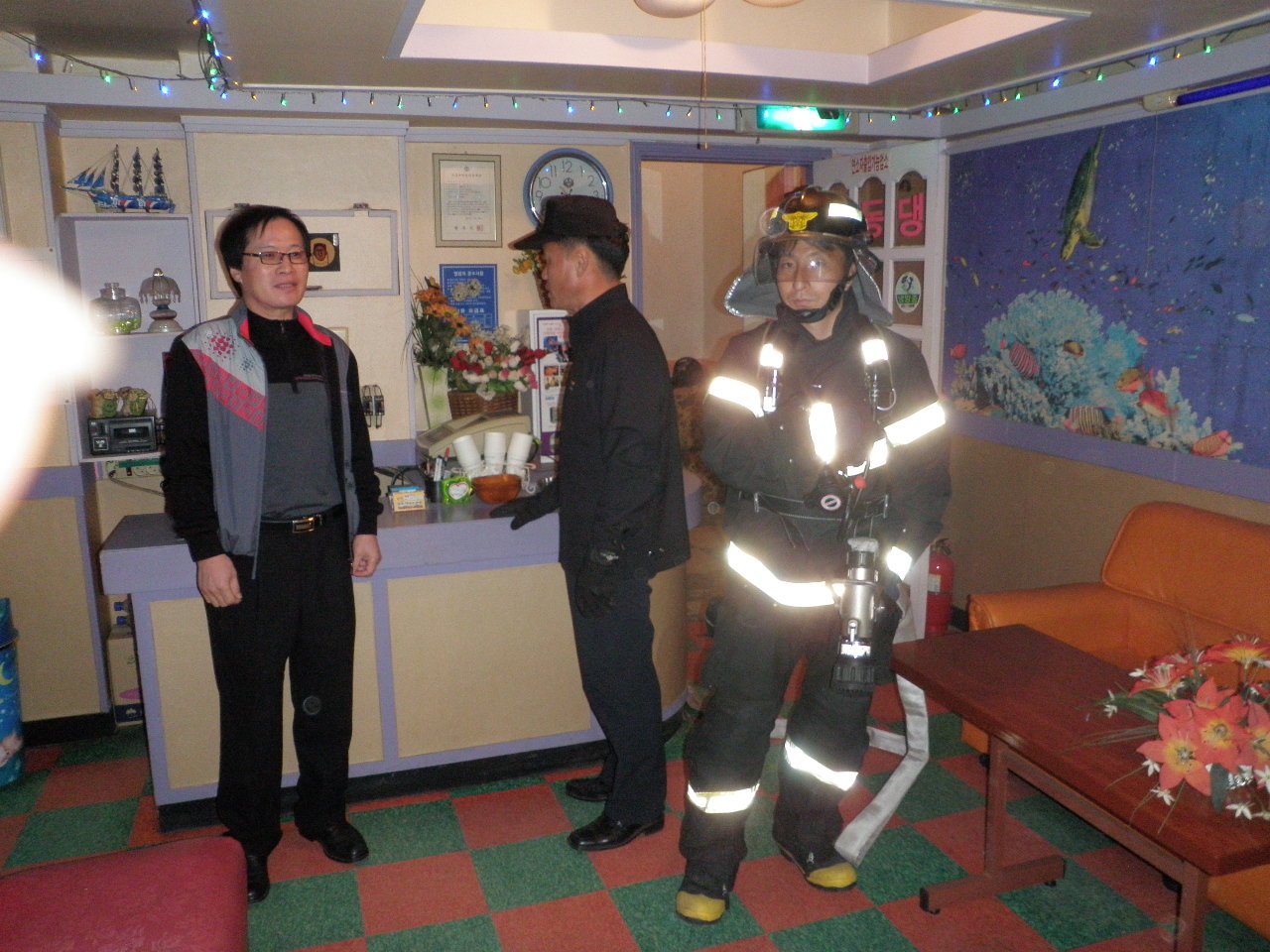 이번 훈련은 지하층에 위치한 노래방에 가상 화점을 부여한후 실시하였는데 실전과 같은 훈련을 반복함으로써 실제 화재가 났을 경우 지하층에 두려움 없이 진입하여 화재를 초기 진압할 수 있도록 몸과 마음을 가다듬을 수 있는 좋은 경험이 되었습니다.