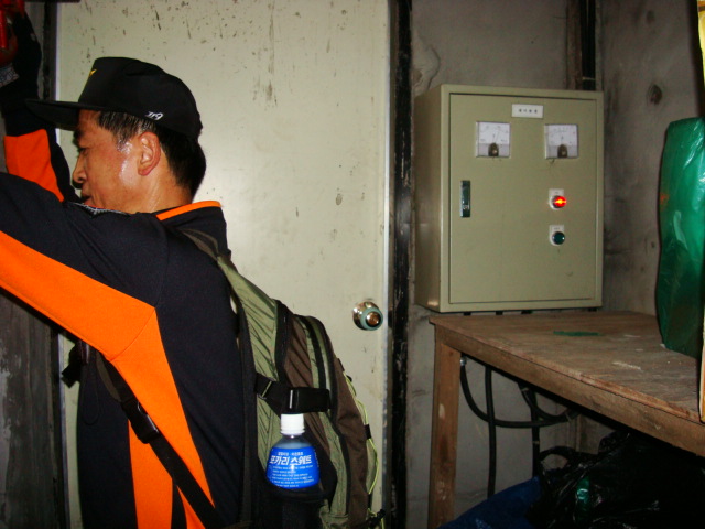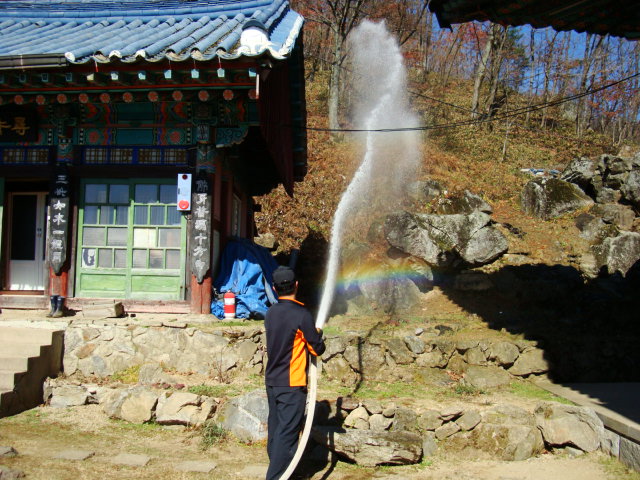 상원사 주지스님께 비상소화전 사용법을 알려드렸고..