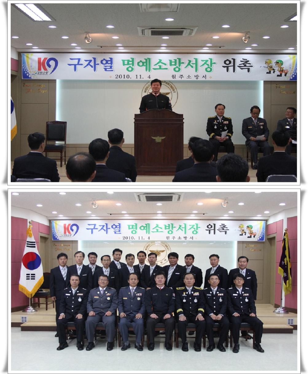 원주소방서(서장 박창진)는 4일(목) 오전 10시부터대회의실에서 원주소방서장, 의소대연합회장, 원주시의소대장 및 직원 등 100여명이 참석한 가운데 명예서장 위촉식을 가졌다.