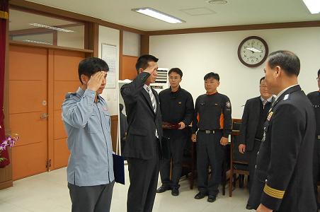 금일 표창을 전수받은 2명은 소방방재청장을 표창을 받은 119구조대 지방소방교 지준영,
