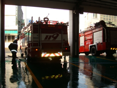 한동안 추운 날씨로 인해 청사 주변에 있던 얼음도 제거하고 차고청소와 소방차 세차도하였습니다.