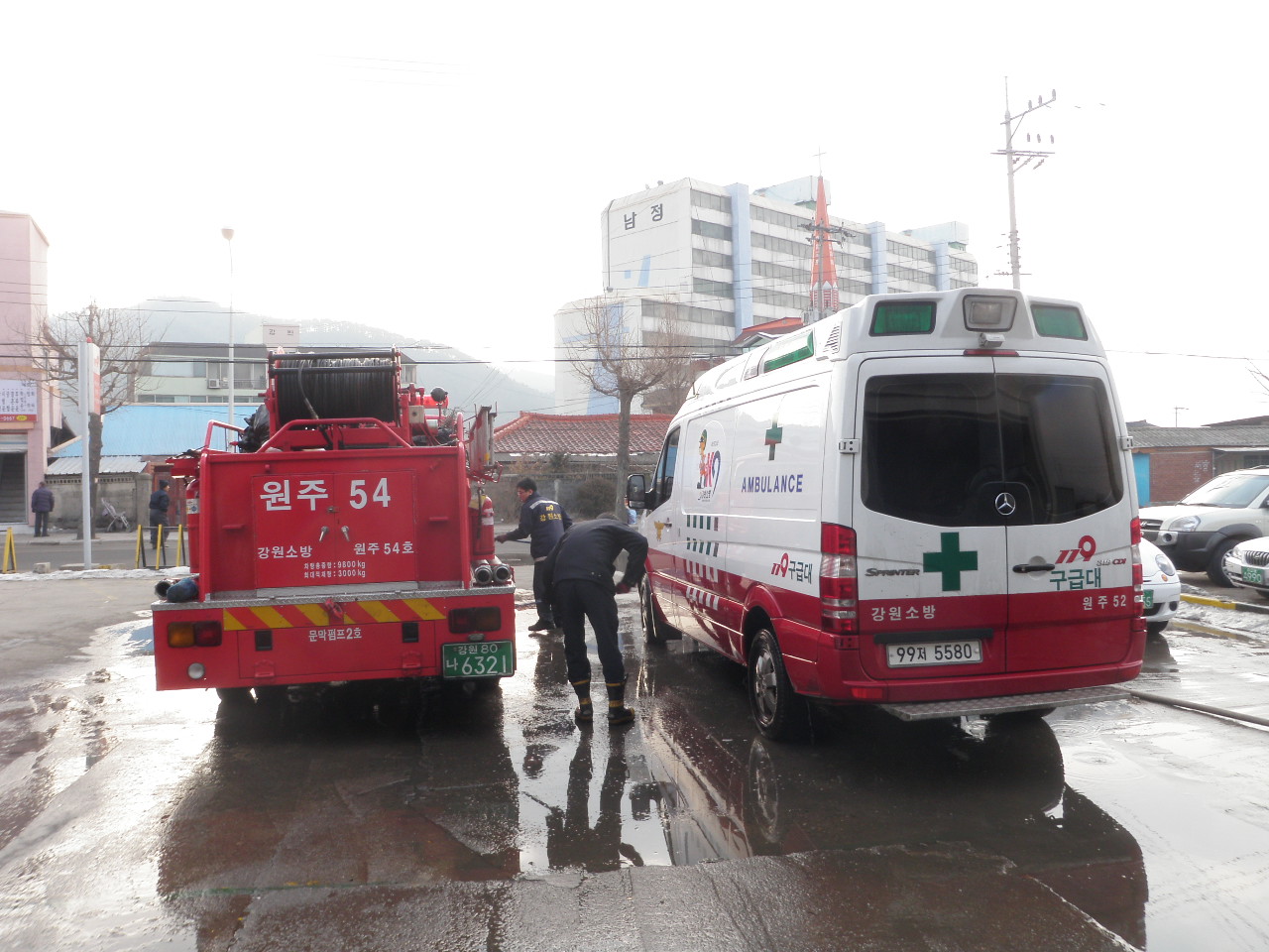 문막119안전센터(센터장 전인덕)에서는 금일 청사 내 환경정비와 소방차량 세척을 실시했습니다. 오랜 한파가 끝나고 날씨가 풀려 그동안 고생한 펌프차들을 깨끗하게 세차하고 차고 및 청사 주변을 청소했습니다. 벌써부터 봄이 온 것만 같습니다.~~ ^^