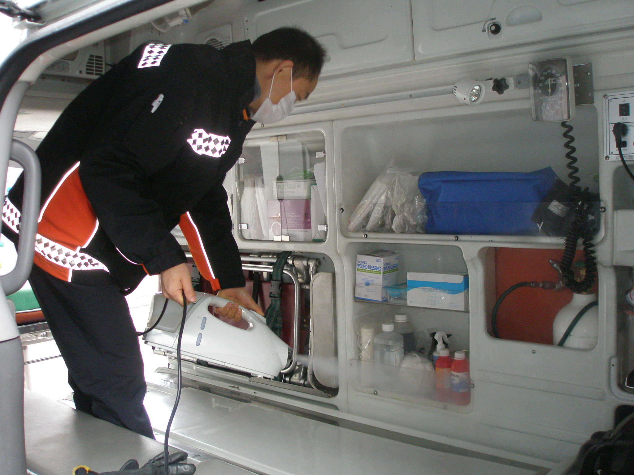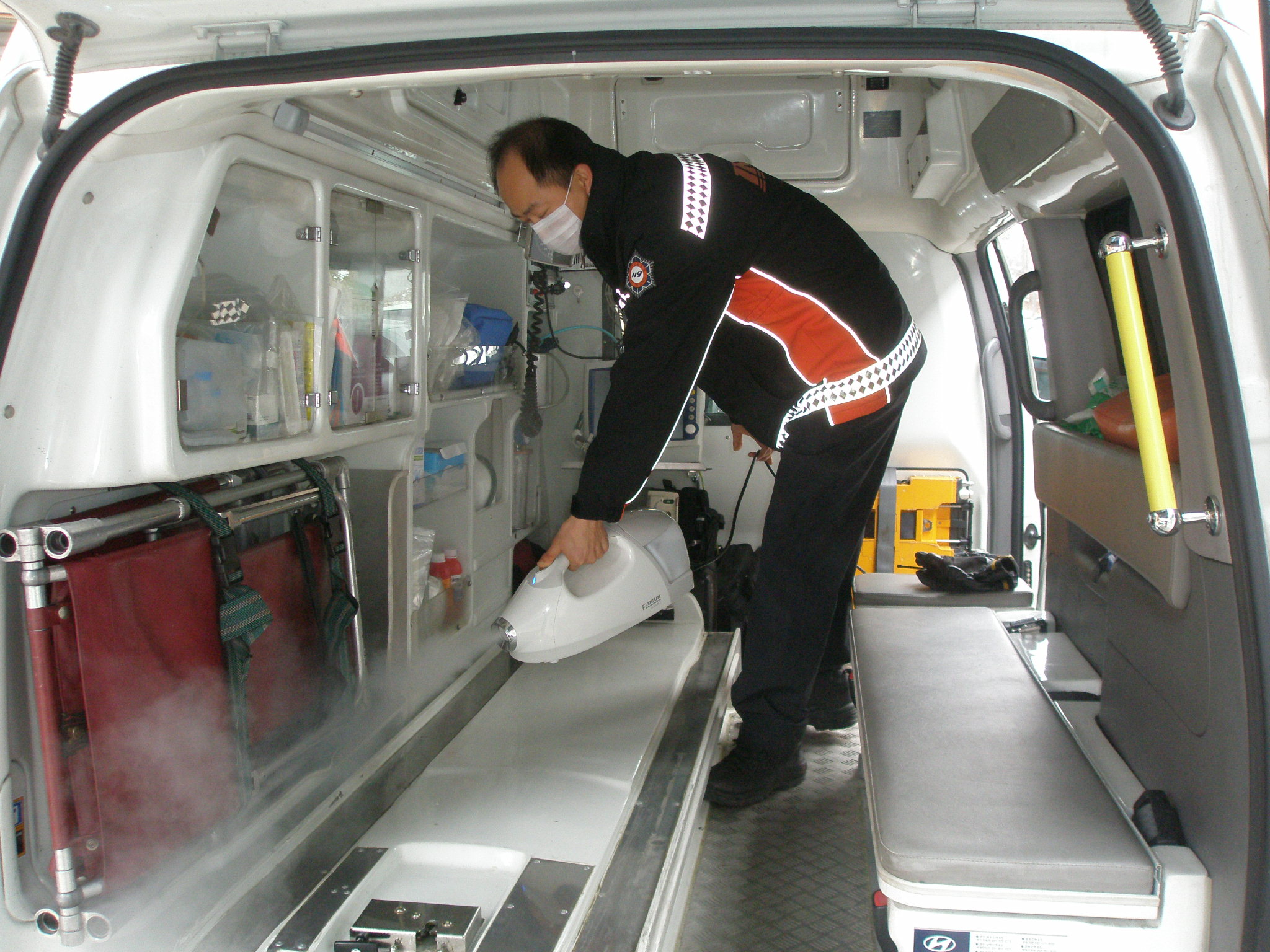 원주소방서(서장 박창진) 명륜119안전센터에서는 매주 구급차 소독을 실시하고 있습니다. 환자분이 탑승하는 차이니만큼 더욱 신경써서 깔끔하게 관리를 하고 있습니다.