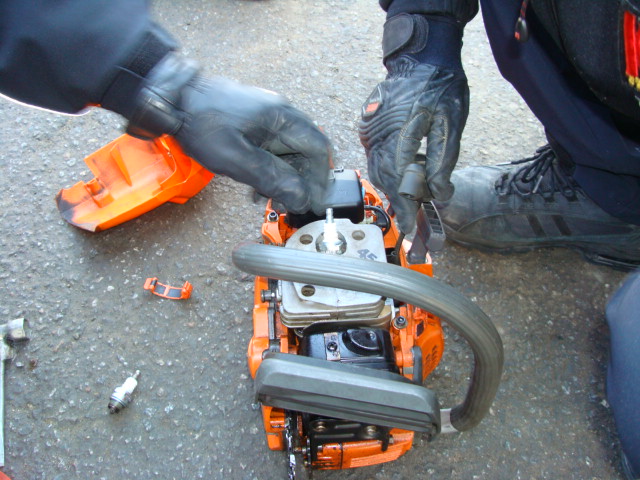 원주소방서(서장 박창진) 119구조대에서는 아침점검중 체인톱 시동상태가 좋지않아 점화플러그를 교체하였습니다.