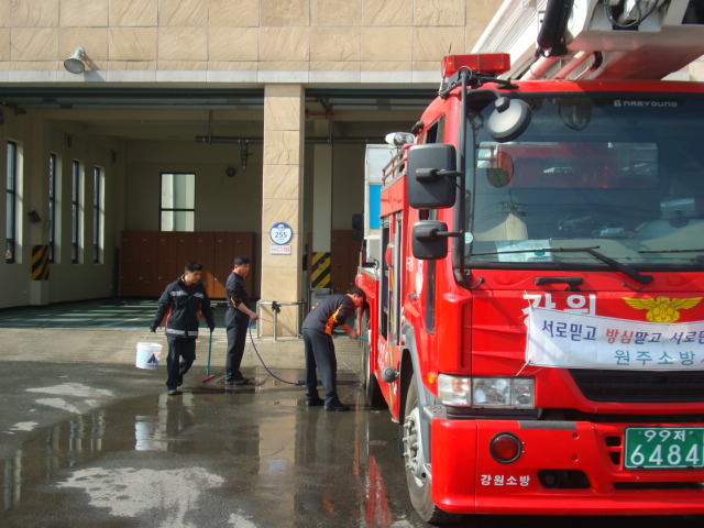 원주소방서(서장 박창진) 단구119안전센터는 2. 24(목) 펌프, 굴절, 구급 차량 내부·외부 청소를 실시하였습니다. 며칠사이 날씨가 너무 따뜻해져 청소하기에 딱 좋은 날씨입니다. 겨울이 가고 봄이 온 것 같습니다.