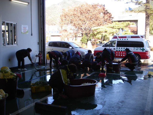 11월 정기교육이 끝나자마자 박화선 신림여성대장님을 필두로 한 여성대원 여러분들께서 직원들의 겨울김치 걱정을 덜어주고자 김장김치를 해 주셨습니다.