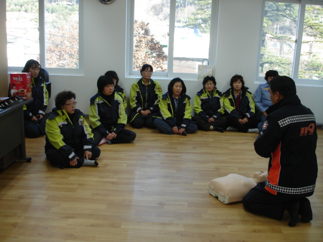 첫째 : 겨울철 소방안전대책 전달 교육 및 올바른 화재신고 및 소방차 유도요령 교육