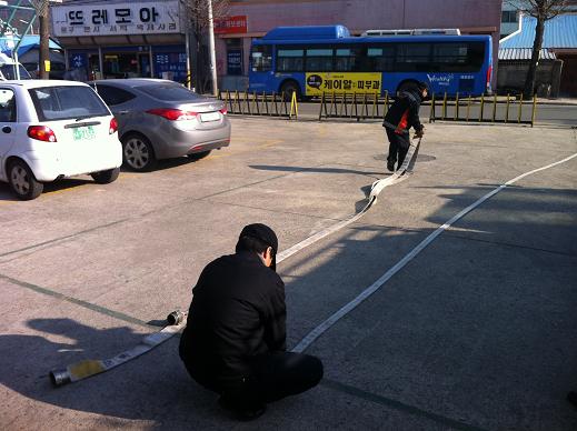 문막119안전센터(센터장 전인덕)에서는 금일 소방전술훈련을 실시했습니다. 금일 훈련 종목은 호스전개 및 회수! 우리센터에서 주로 사용하고 있는 두겹말은 호스가 주 훈련대상이었고 그외에도 한겹말은호스 등도 빼놓지 않고 훈련에 임했습니다. 화재현장에서 신속한 호스전개, 문제없습니다.