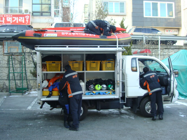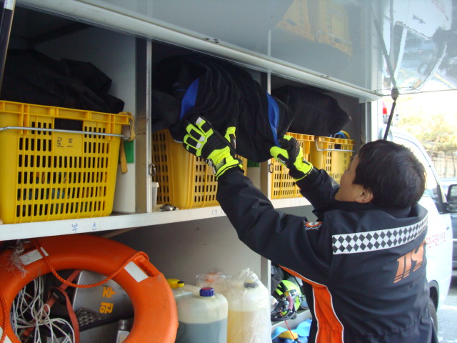 혹시 있을지 모르는 수난출동을 위해 언제나 장비점검 및 구조훈련에 만전을 기하고 있습니다.