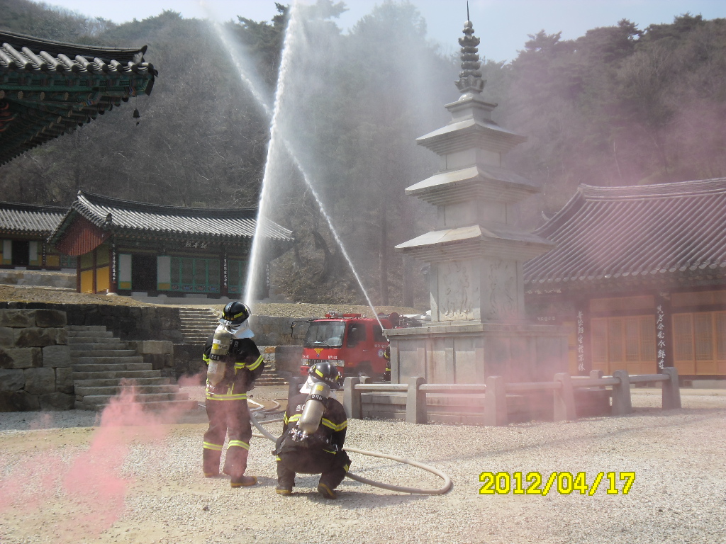 원주소방서 (서장 김시균) 태장119안전센터에서는 전통사찰(구룡사)을 대상으로 합동소방훈련을 실시하였습니다. 이날 훈련에서 전통사찰에 대한 지속적인 화재진압 훈련을 통해 초기 대응능력을 향상시키는 한편 소방관들의 화재진압 적응력을 강화시켜 인명,재산피해를 최소화하고 전통문화재의 안전을 지키는데 최선을 다할것을 다짐했습니다.