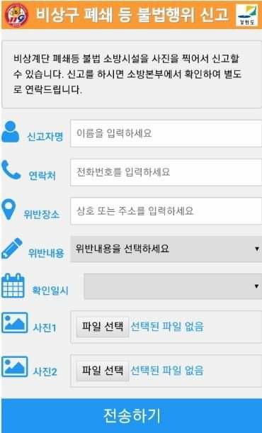 스마트폰을 이용한 비상구 신고포상 시스템을 운영중에 있습니다.