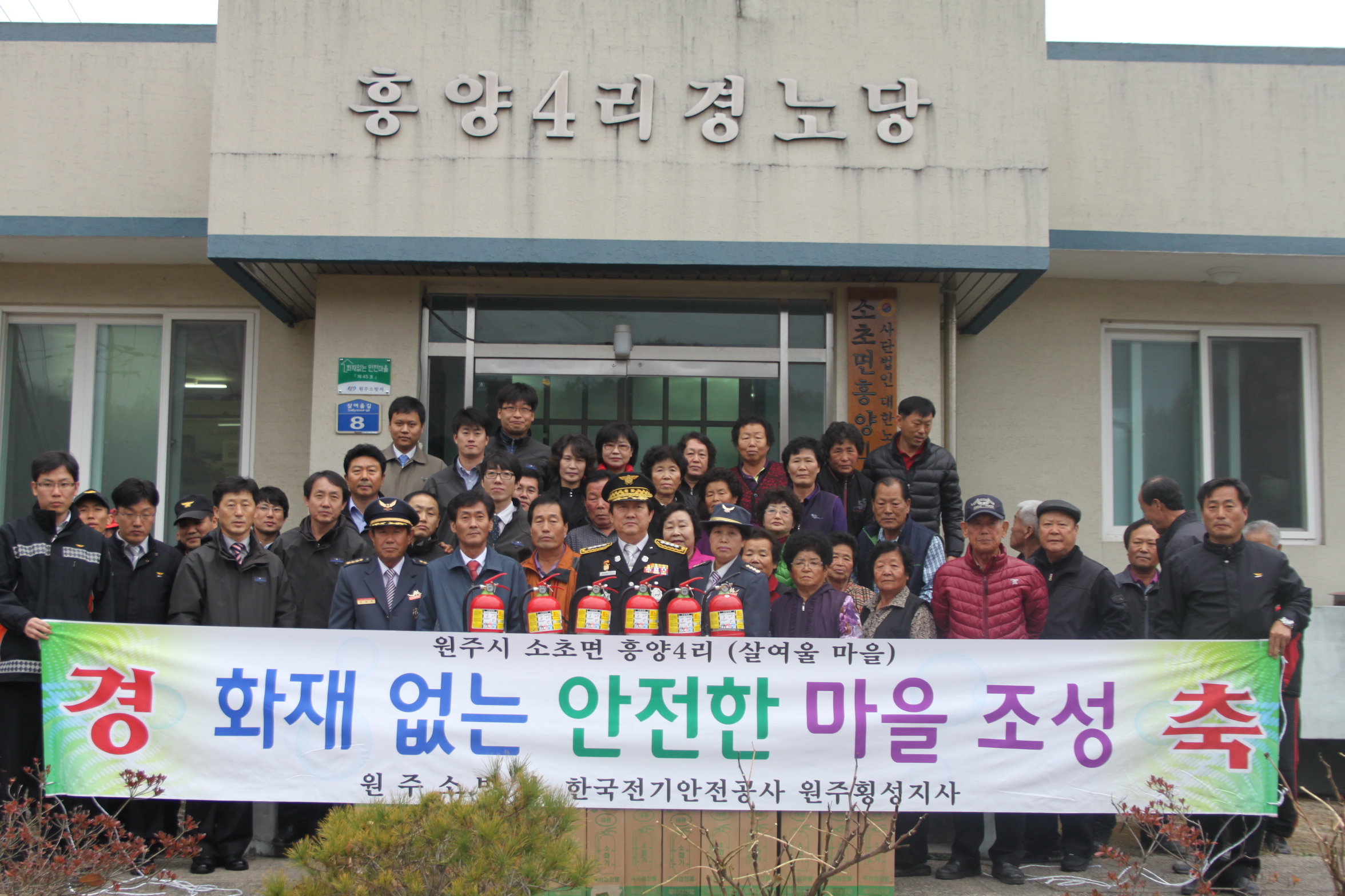 김시균 원주소방서장은 8일(목) 원주시 소초면 흥양4리 살여울 마을을 '화재없는 마을'로 지정하고, 기초소방시설을 전달했다.
