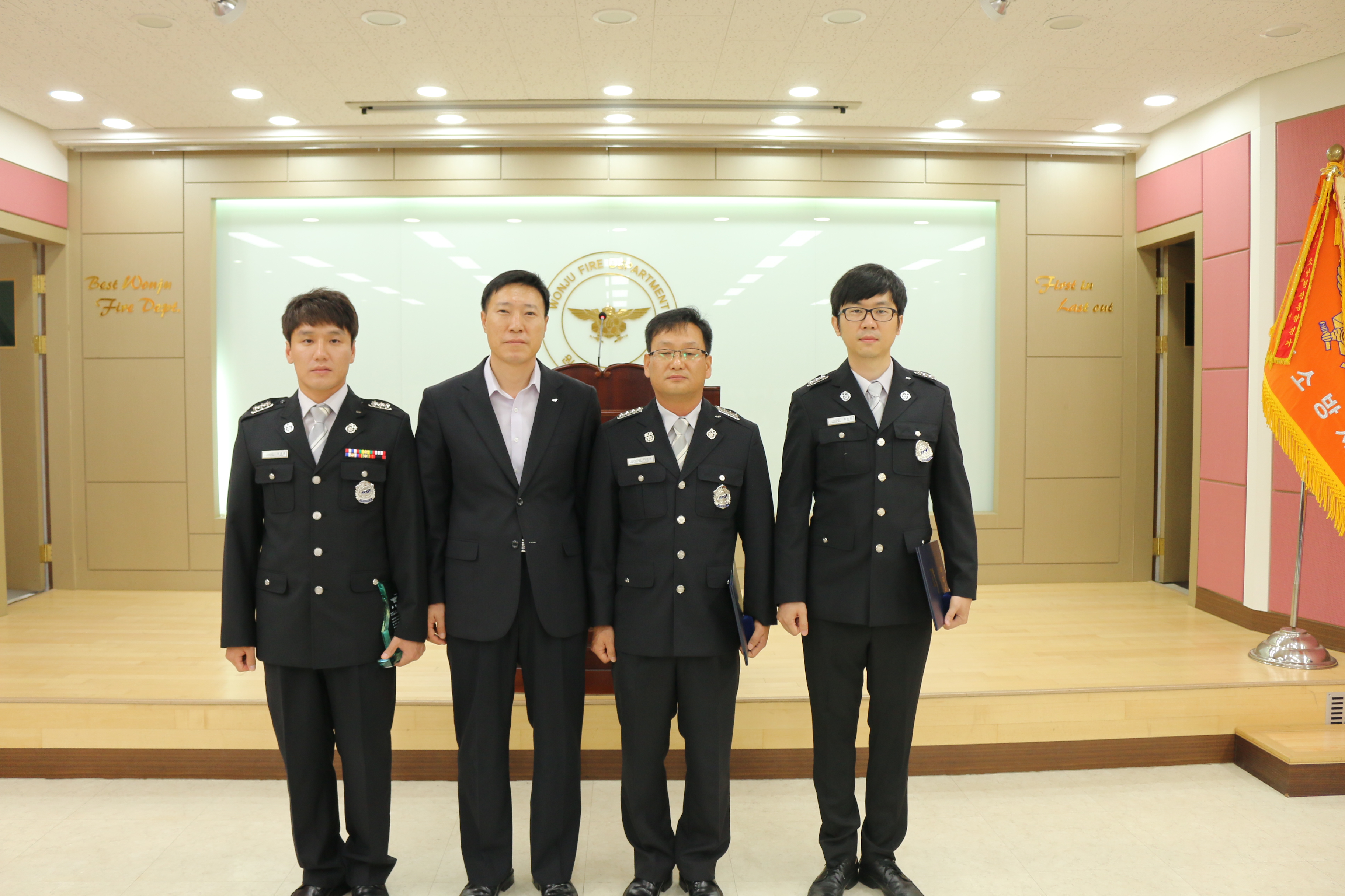 2016.09.05 직원조회 행사에서 구조대 원종훈 소방교 자랑스런 소방인상 수상 및 이윤범 소방장과 한호진 소방교의 하트세이버 수여식이 있었습니다.