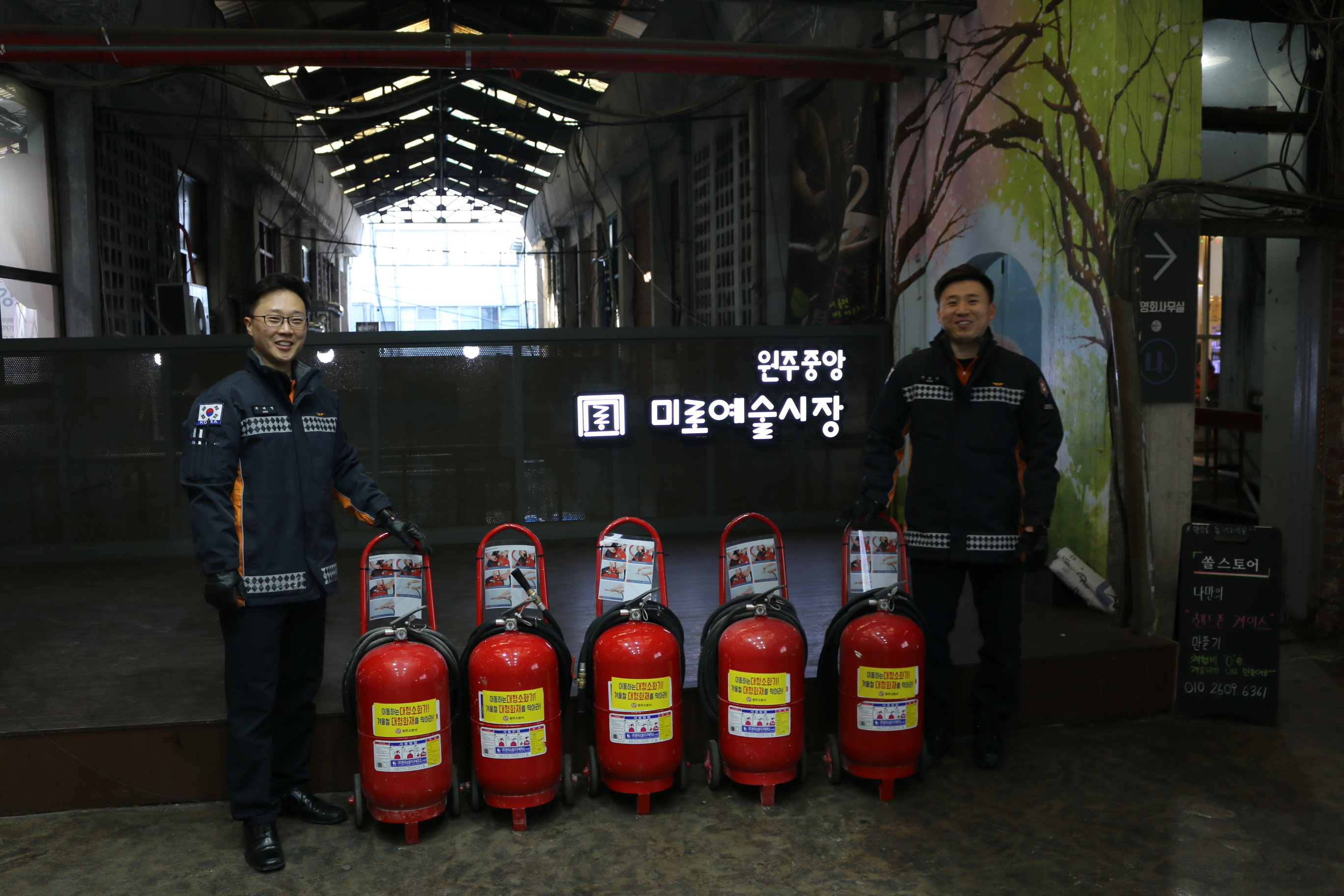 원주소방서(서장 이병은)는 중앙시장 관계인에 의한 화재 초기대응체계를 강화를 위해 대형소화기 5개를 배치