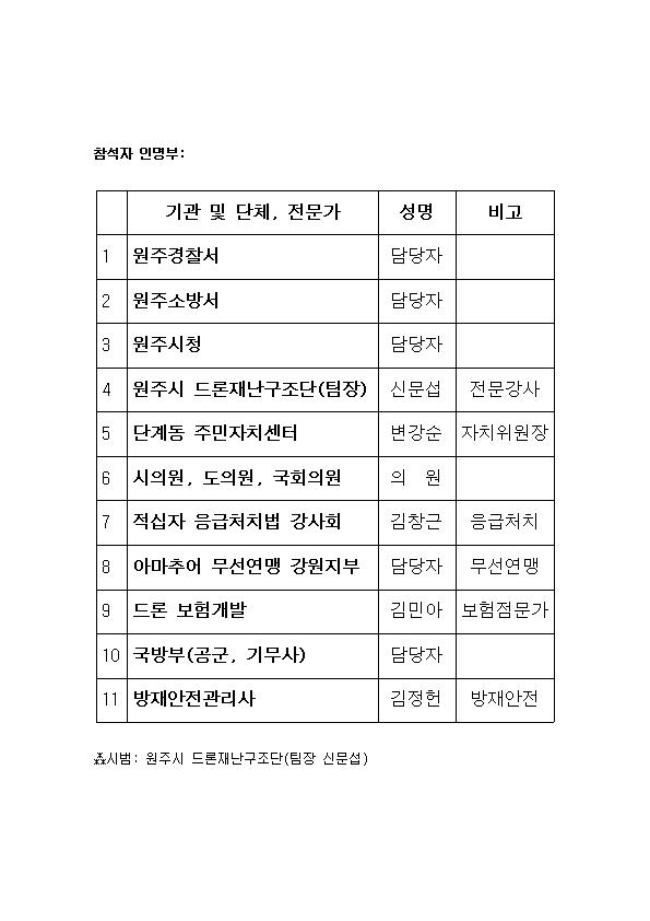 원주시 드론재난구조단 창단에 관한 감담회에 초대합니다.