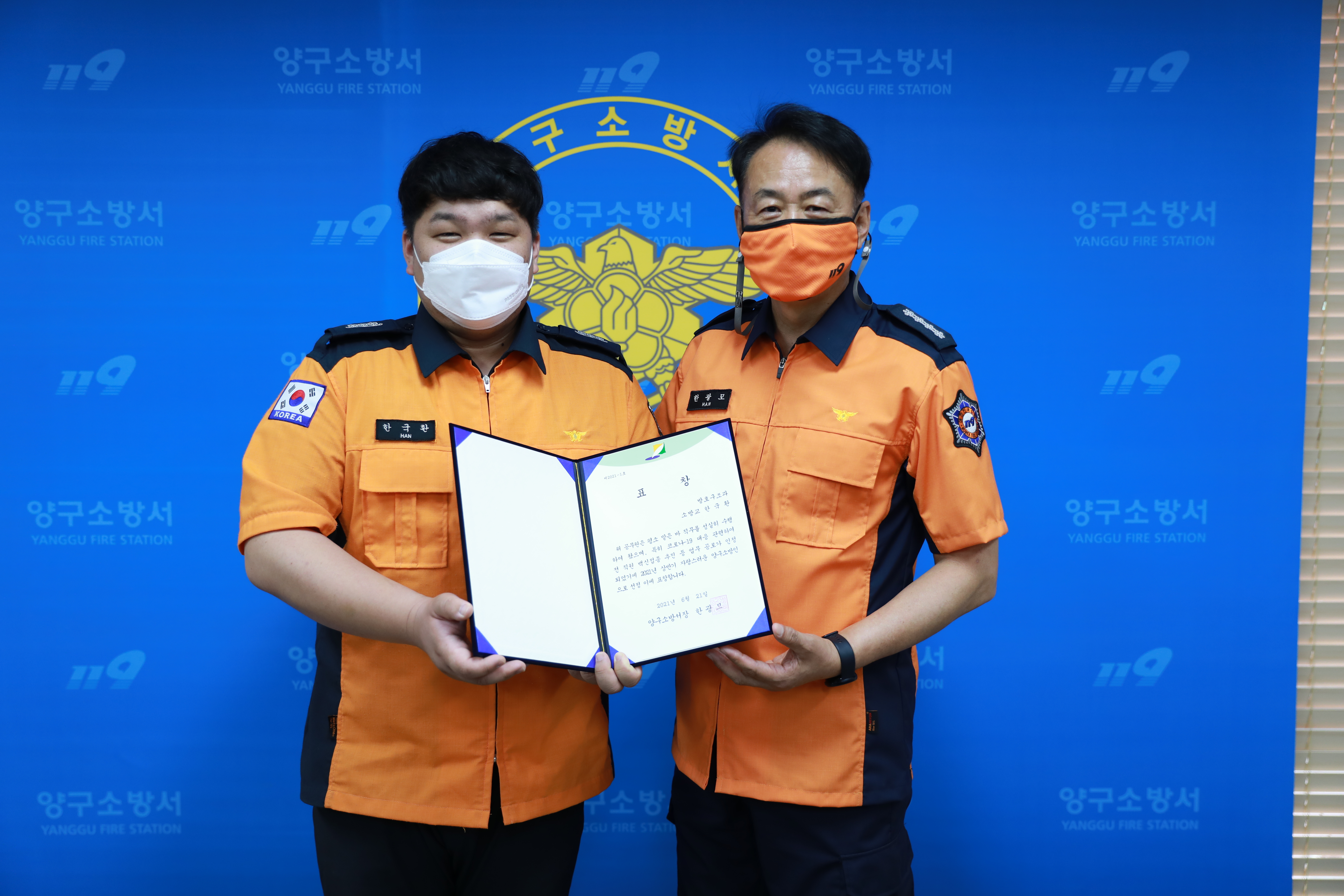 2021년 상반기 자랑스런 양구 소방인(한국환) 표창 선정