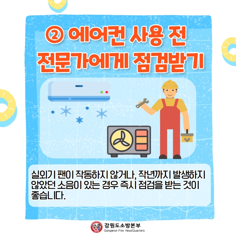 여름철 냉방기기 청소부터, 점검, 인증번호 확인 등 화재예방에 동참해주세요!