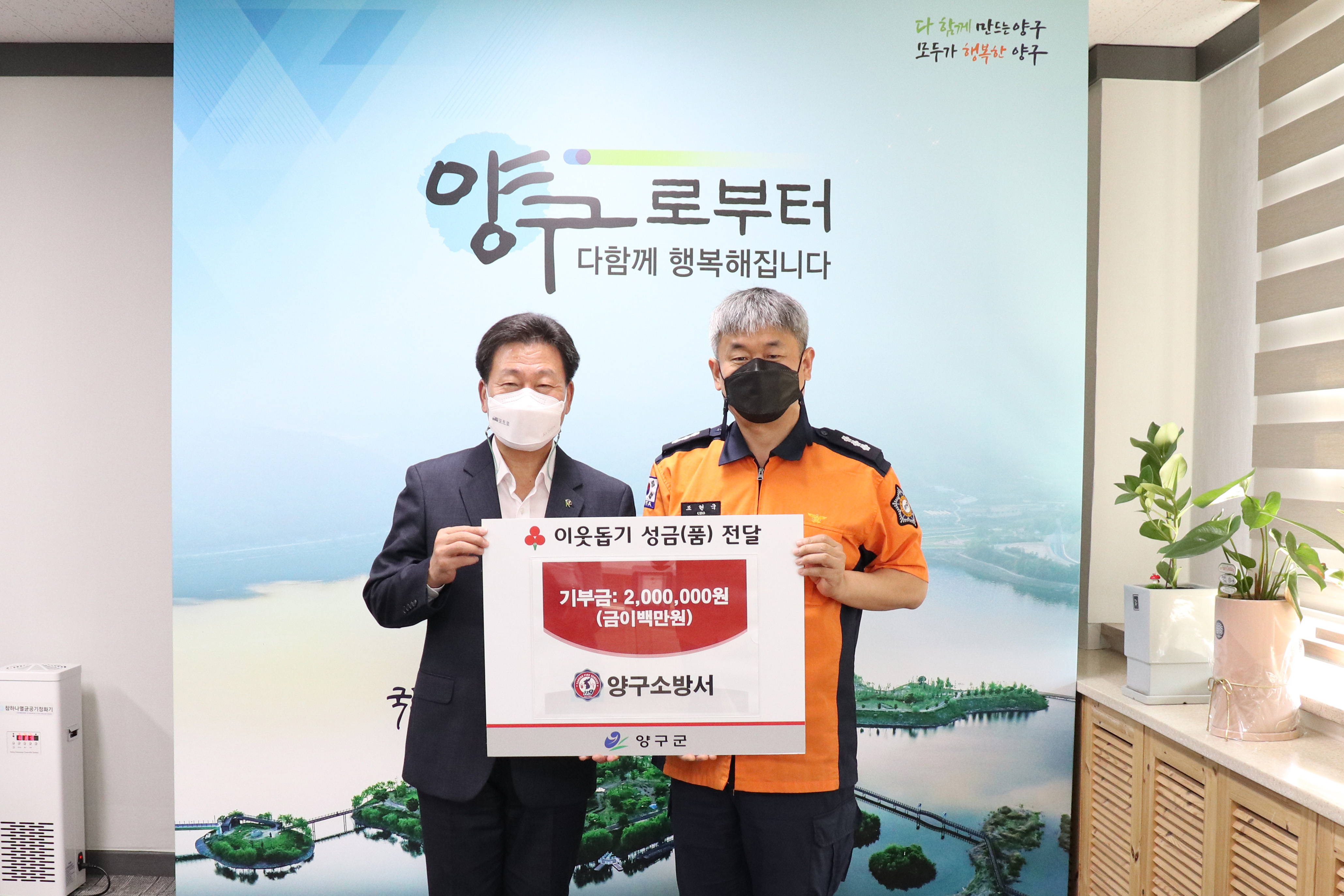 양구소방서는 추석을 맞아 불우이웃돕기 성금을 기부했습니다.