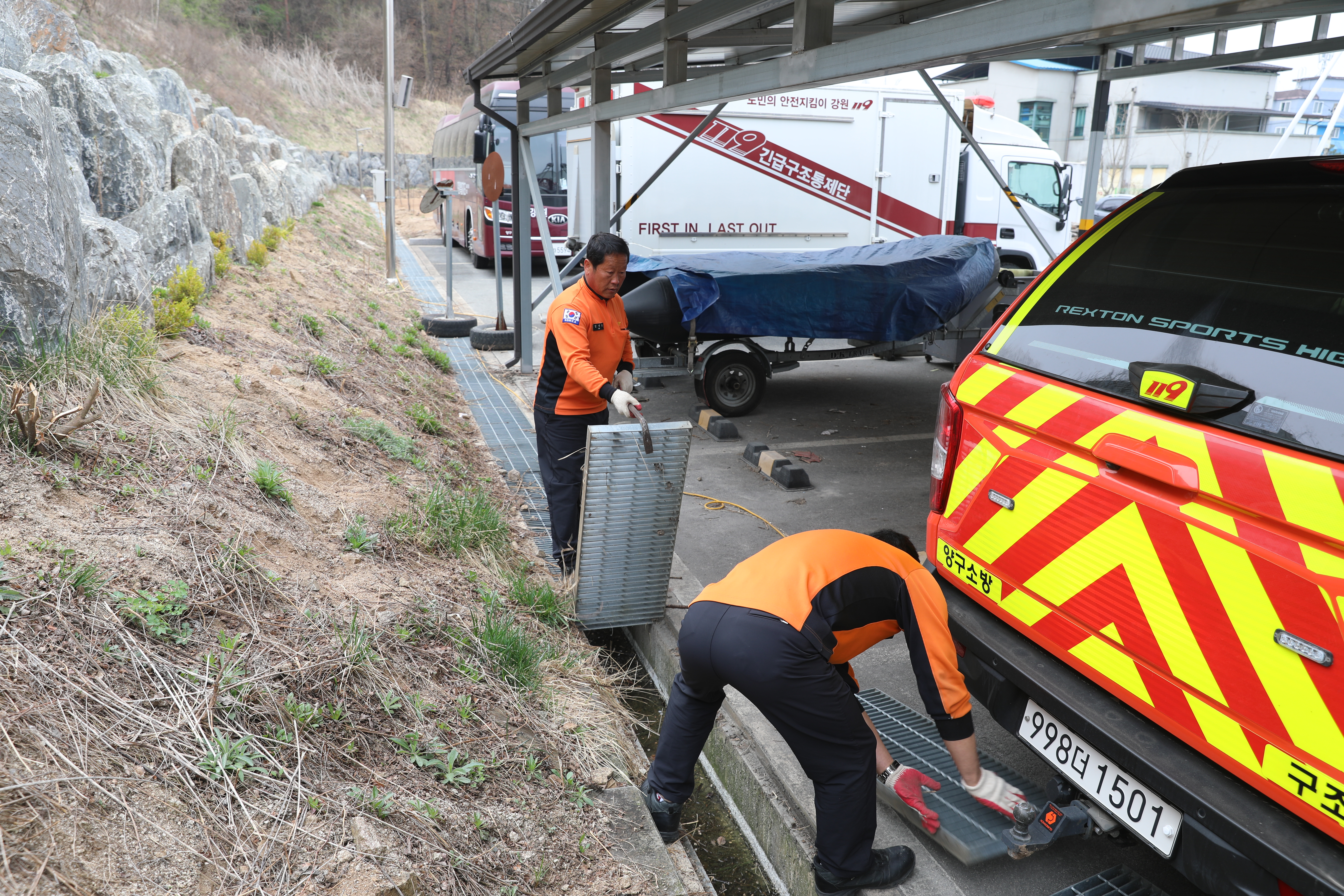 양구소방서, 청사 배수로 내 퇴적물 정리 완료(3팀)