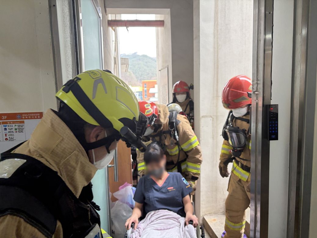 소방대원 21명·차량 7대가 참여해 출동로 확보, 화재진압, 환자·입소자 대피 등