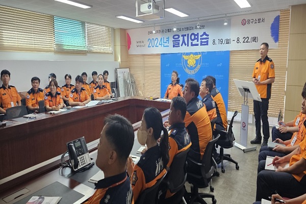 양구소방서는 이번 을지연습에서 테러 대비 및 화재 대피 훈련, 접적지역 주민 이동훈련, 양구군청 비상대기 종합상황실 합동 통제반 운영을 중점으로 훈련했다. 주요 내용으로는 △전시 직제 편성 훈련 △상황 발생 지역에 대한 사태 선포와 관계기관 협업 기능 강화 △다중이용시설 방화 및 테러 대응체계 검토 △주민 이동 실제 훈련 △차량 이동통제 및 긴급차량 비상차로 확보 훈련 등이다.