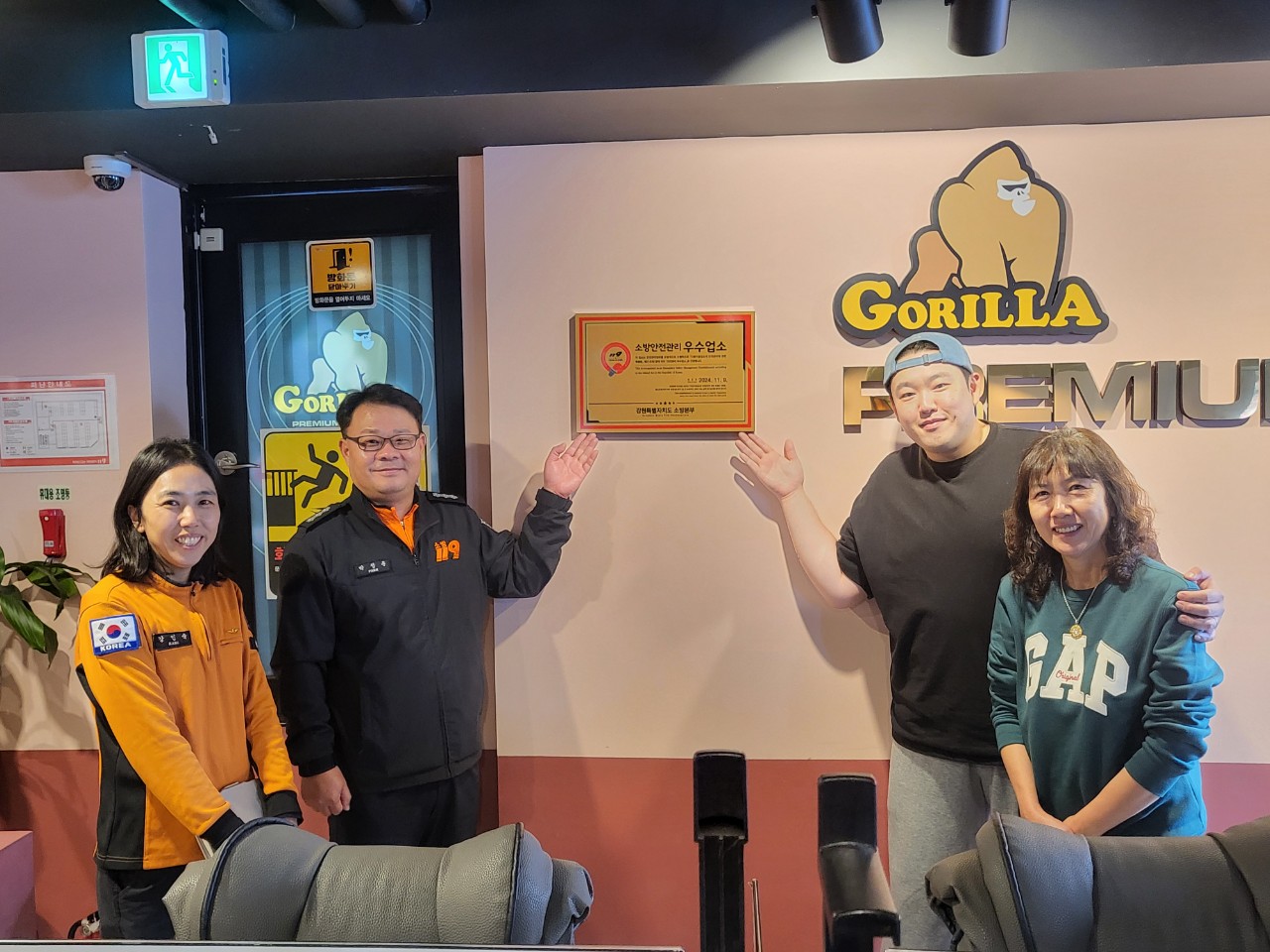 양구소방서(서장:용석진)는 5일 2024년 우수 다중이용업소로 선정된 양구군 고릴라 PC방을 방문해 우수 다중이용업소 명판을 게시했다. 고릴라 PC방은 최근 3년간 화재 발생 기록과 전기·가스·수도·소방 관련 법령 위반 사항이 없고 철저한 소방시설 유지관리를 펼쳐 우수 다중이용업소로 선정됐다. 양구=윤종현기자