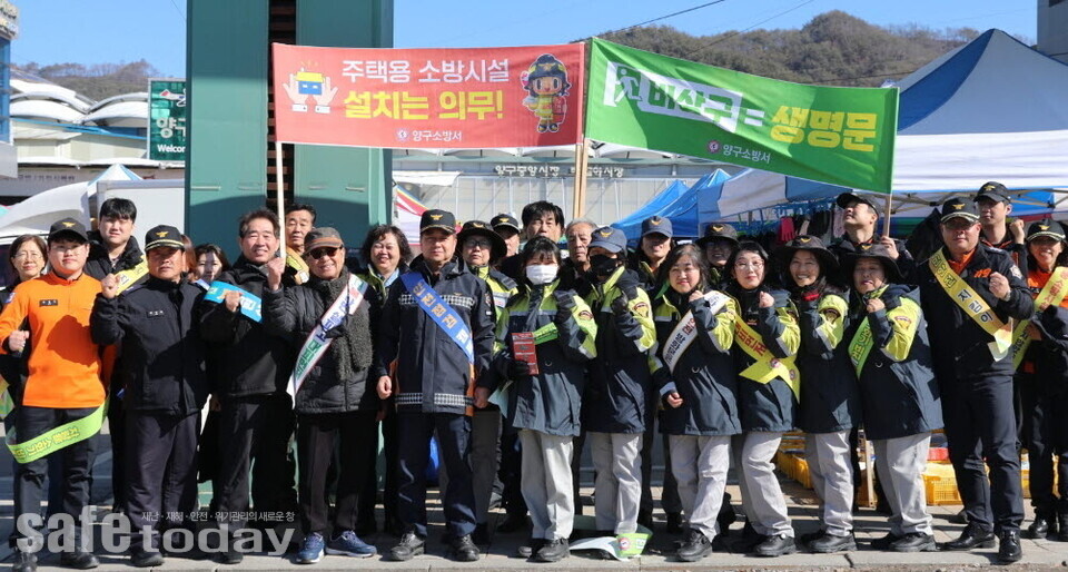 양구소방서(서장 용석진)는 2월20일 오후 2시 양구중앙시장에서 ‘안전하기 좋은 날’ 행사를 열고 생활 주변의 위험 요소를 점검·제거하는 활동을 펼쳤다.