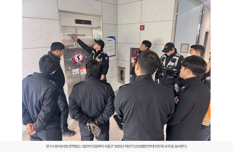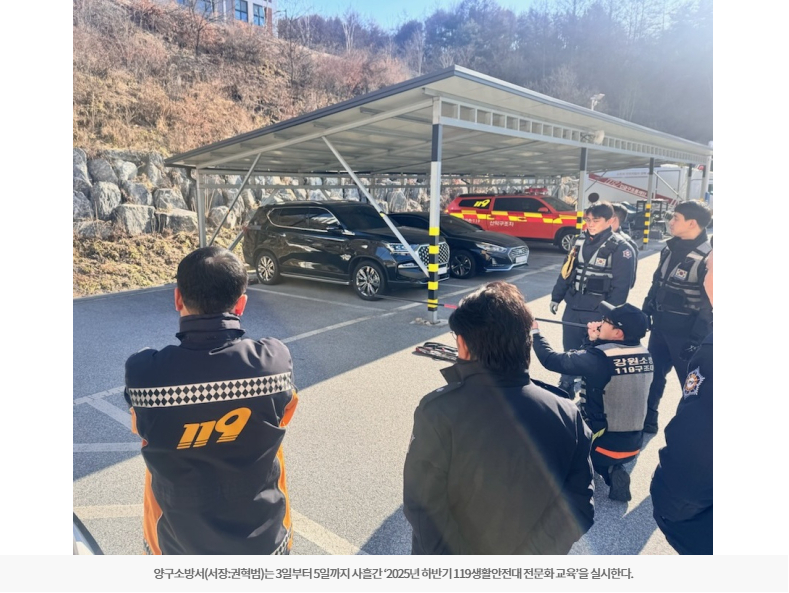 【양구】양구소방서는 3일부터 5일까지 사흘간 ‘2025년 하반기 119생활안전대 전문화 교육’을 실시한다.
