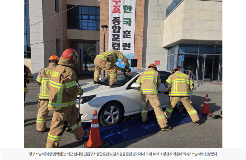 [강원일보] 양구소방서, 긴급구조종합훈련 등 ‘우수’ 소방서 선정