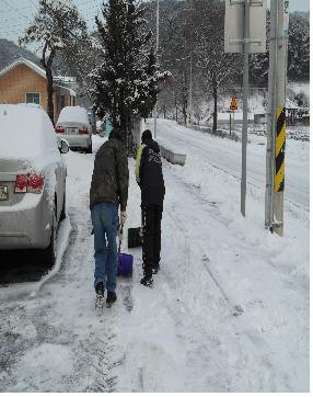 한반도의용소방대에서 2012. 12. 30(일) 08:00 ~ 10:00까지 한반도면 일원에서 제설작업을 실시하였습니다. 연일 계속되는 폭설로 거리 및 인도에 빙판으로 인한 사고,낙상 방지 및 지역을 대표하는 봉사단체로서 앞으로 계속 활동 한다고 합니다. 주천센터 관할 의용소방대에서 계속되는 봉사활동이 추운겨울 따뜻한 솜이불 처럼 포근함이 느껴집니다.