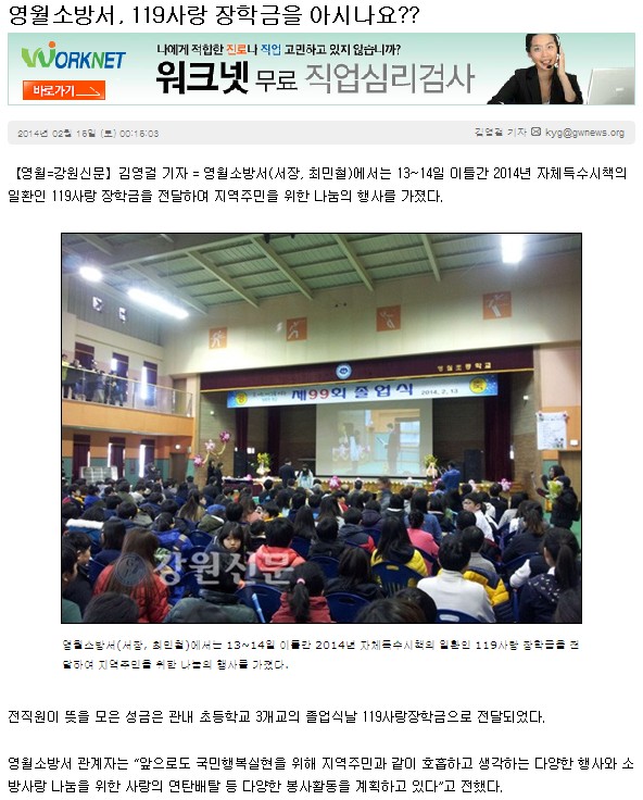 2014-2-15 영월소방서, 119사랑장학금을 아시나요