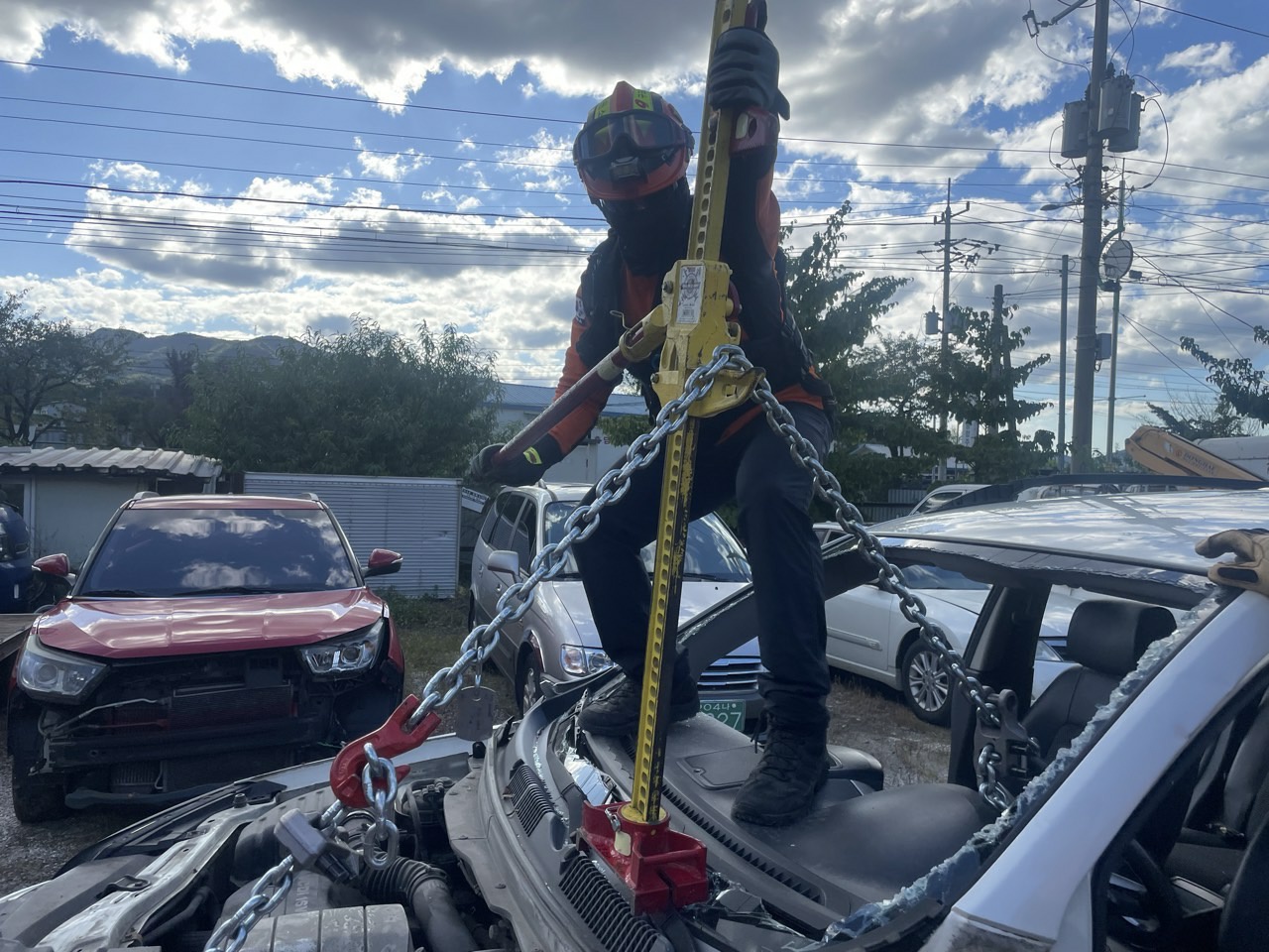 주요 내용은 ▲차량사고 현장활동 안전사고 사례 교육 ▲유압장비 등 차량사고 대응 장비 사용법 숙달 ▲차량 시건 및 보닛 개방, 유리 및 필러 절단 등 현장 대응 기법 훈련 등이다.