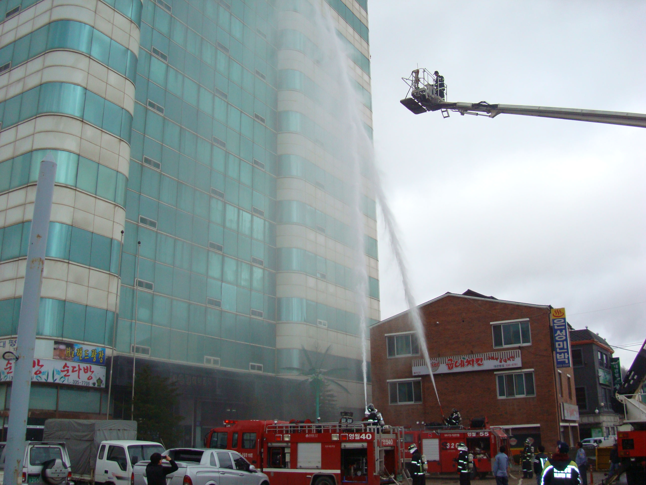 ? 용평리조트 굴절사다리차 전개 인명구조 및 화재진화 활동