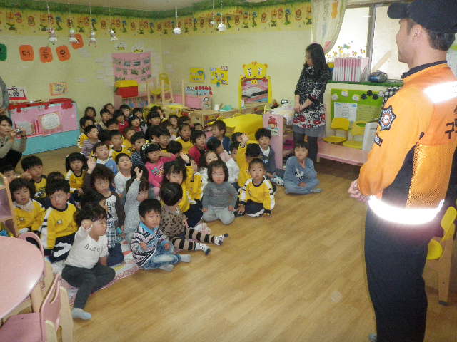 일주일에 한번 실제로 싸이렌을울려 3세부터 5세까지 아이들이 화재가상훈련을 하고있었습니다. 그건다 ~~진부센터 직원들이 공들여서 겠지요...(너무자랑하나 )^^