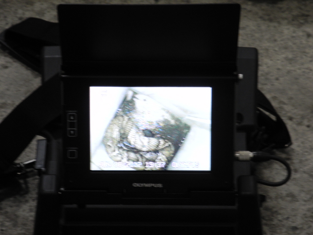그래서 우리구조대원은 내시경카메라 장비를 이용하여 자동차 보닛을 열고 이곳저곳을 자세하게 보기로 했습니다. 내시경카메라는 병원에서 위 내시경할때 쓰이는 것하고 비슷하나 사람한테는 쓸수 없고 건물사이나 좁은 공간을 볼때 사용하는 장비 입니다.