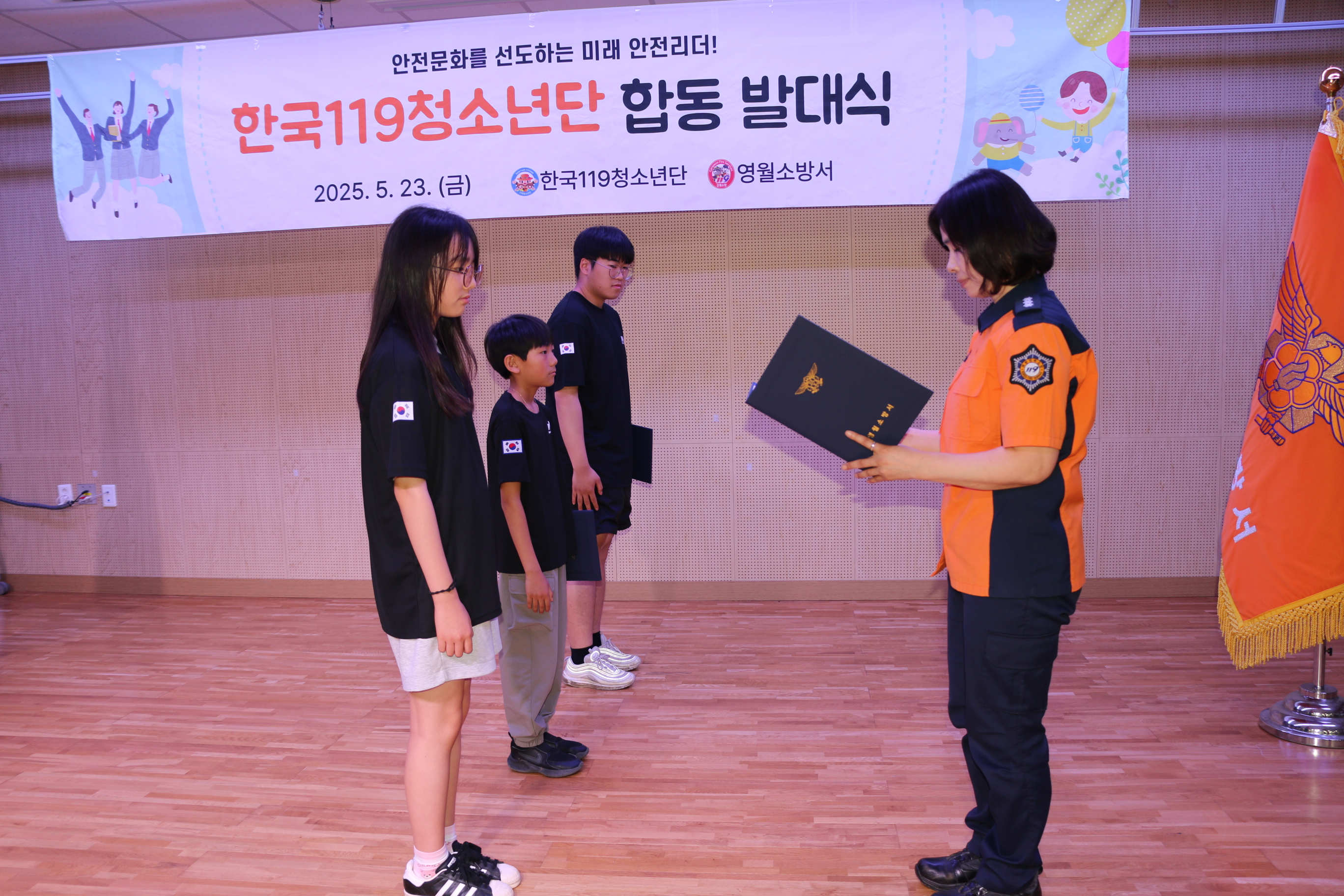 이번 발대식에는 한국소방마이스터고, 영월초, 옥동초 학생 60여 명이 참석했으며, 단장 임명장 수여와 대표 선서 등을 통해 119청소년단의 본격적인 활동을 알렸다. 발대식 이후에는 재난대처 요령과 소화기 사용법 등 소방안전교육도 진행됐다.