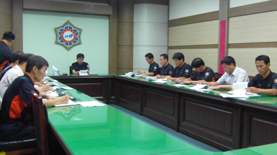 영월소방서(서장 김남백)는 (월) 09:00 부터 소회의실에서 확대간부회의 및 2012년 소방행정 종합평가와 관련하여 그 간의 추진실적 발표 및 미비점 보완 등 하반기 향후 추진계획에 대해 논의 하였습니다.