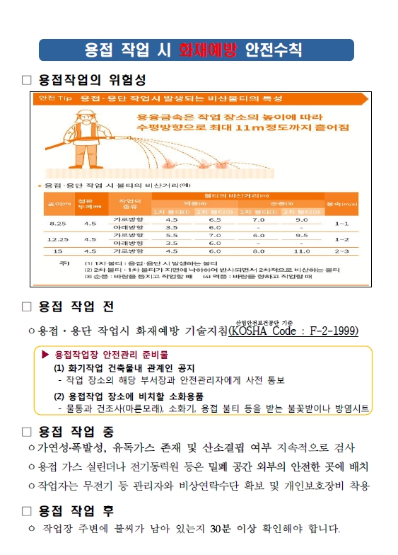 겨울철 공사장 화재예방-용접 작업 주의사항
