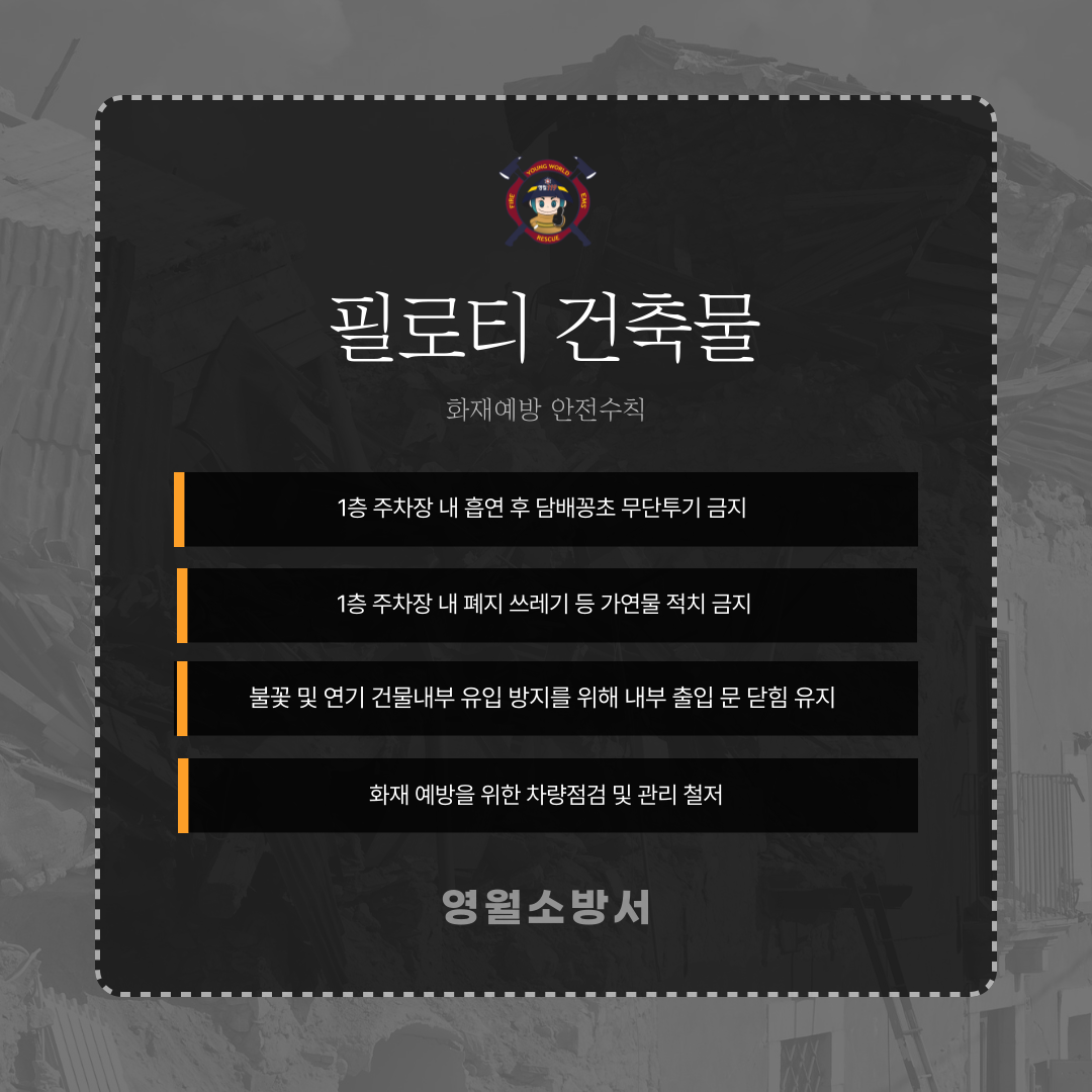 필로티 건축물 화재예방 안전수칙을 준수하여 대형화재를 예방합시다