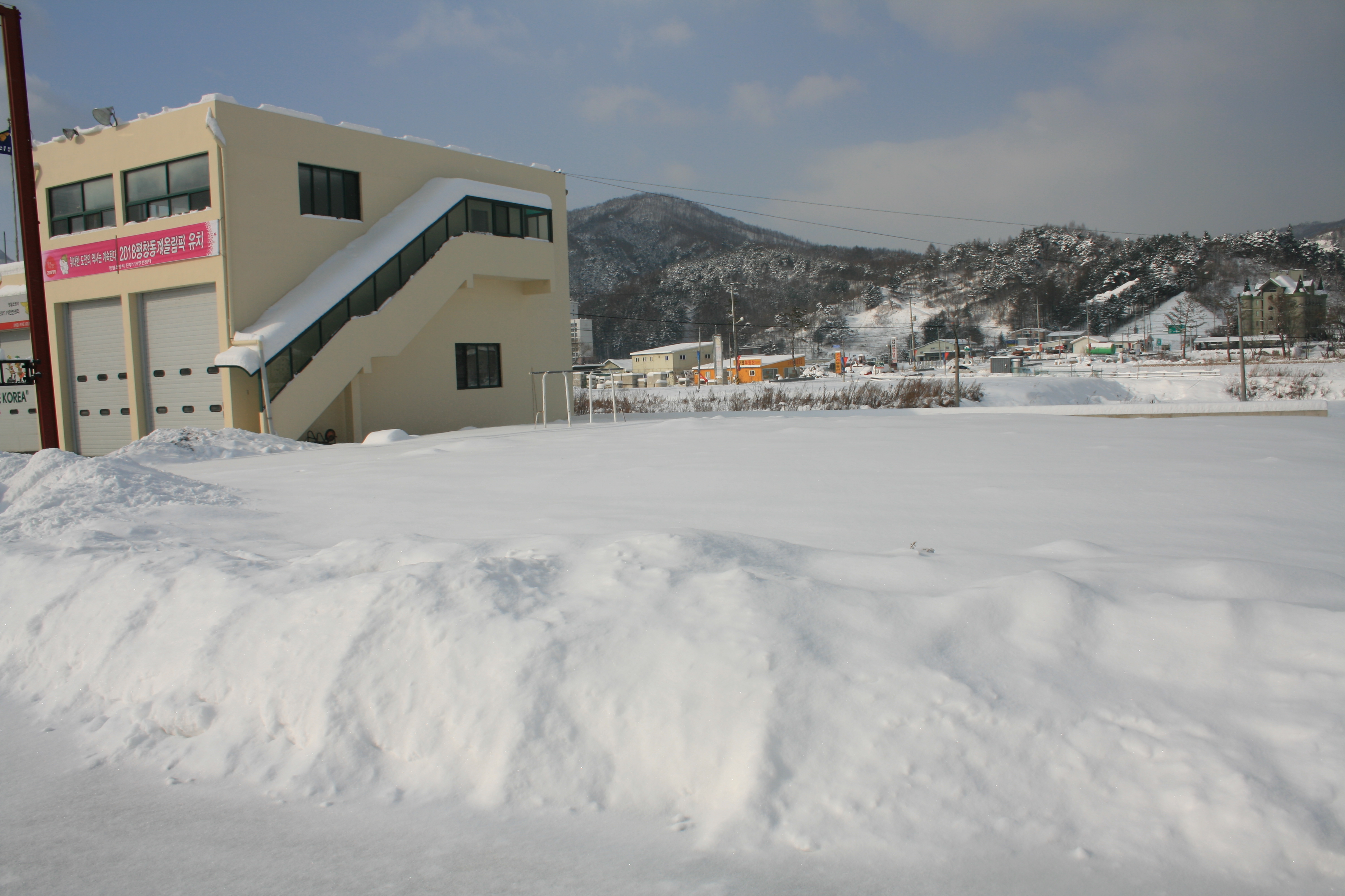 지난 월요일 강원도 전역에 많은 눈이 내렸습니다. 특히 원주 영월 그리고이곳 진부,대관령쪽에 많이 내렸네요......오늘 아침 찍은 우리진부센터 앞 모습입니다....강원도 전역의 온 산이 하얀 눈으로 쌓였네요......겨울산행 하시는 분들 특히 조심하셔야 합니다....