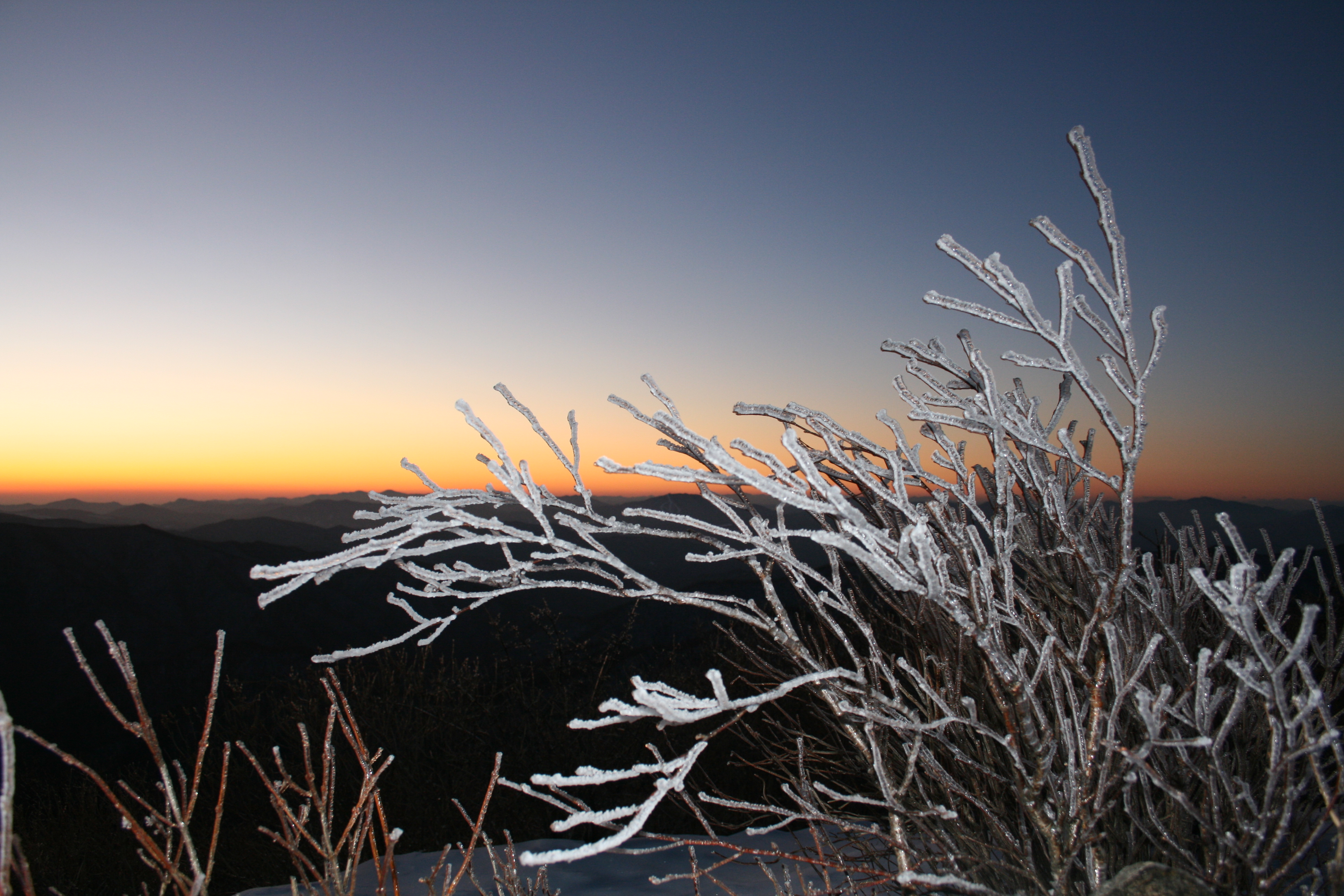 매서운 찬바람이 콧등을 스치는 이른새벽 05시 30분!! 오대산으로 향했다. 엇그제 내린 흰눈이 아마도 멋진 상고대를 만들지 않았을까? 하는 기대감으로!!!! 세찬 바람에 눈발은 다 날리고, 나뭇가지에 얼어붙은 얼음만이!!! 정상에서 또다시 멋진 일출을 감상하고 내려왔다......