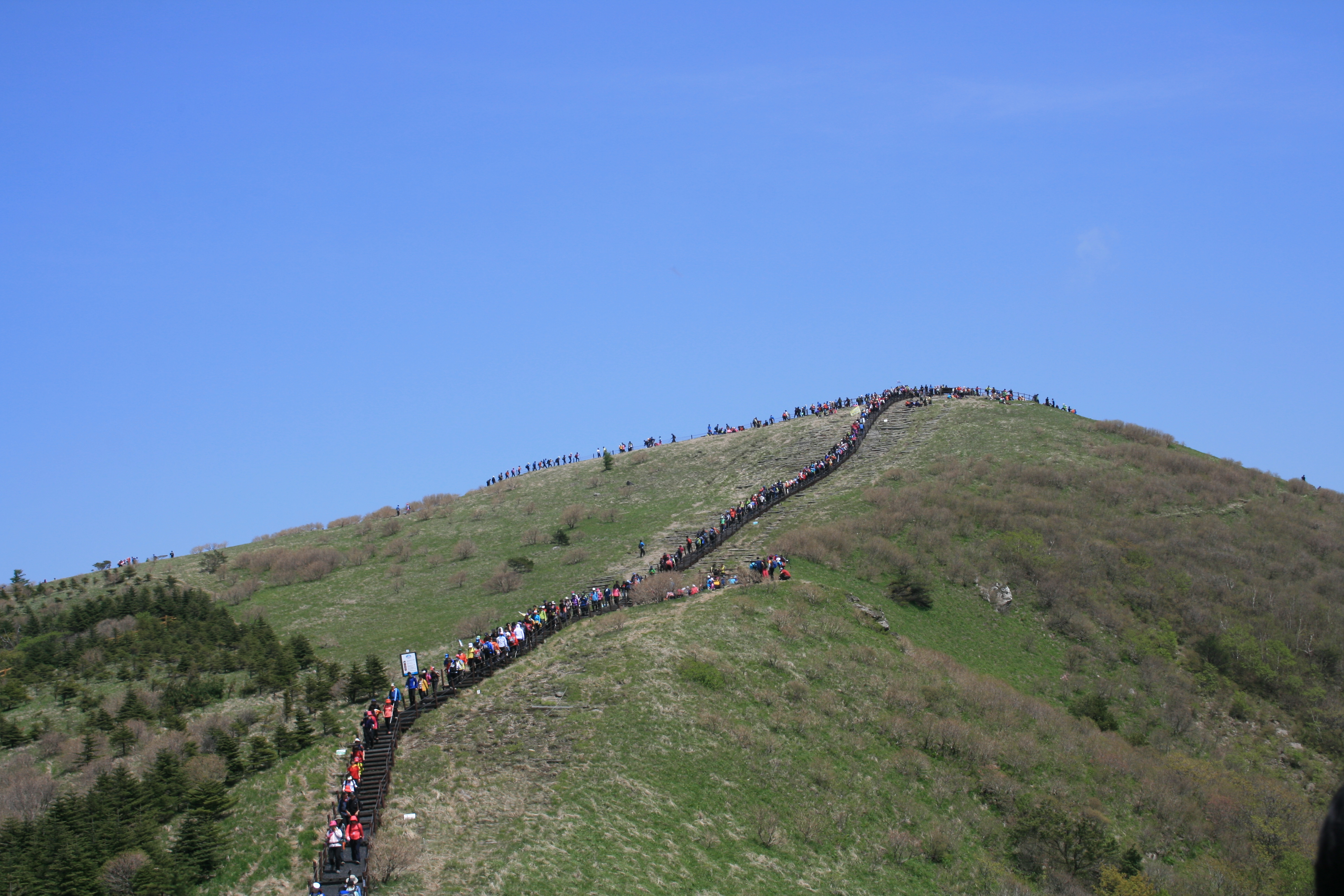 5월의 마지막 일요일!! 전날 합천 가야산산행을 마치고 올라오면서 일요일인 어제 소백산에 올랐다. 수많은 등산객이 몰려들어 정상에서는 인산인해를 이루웠지만, 정작 보고픈 철쭉은 아직 꽃망울을 피울 생각도 하지 않았다. 더 멋있는 사진을 보고시픈 분은 http://cafe.naver.com/wjfire119mt 로 오시면 됩니다..