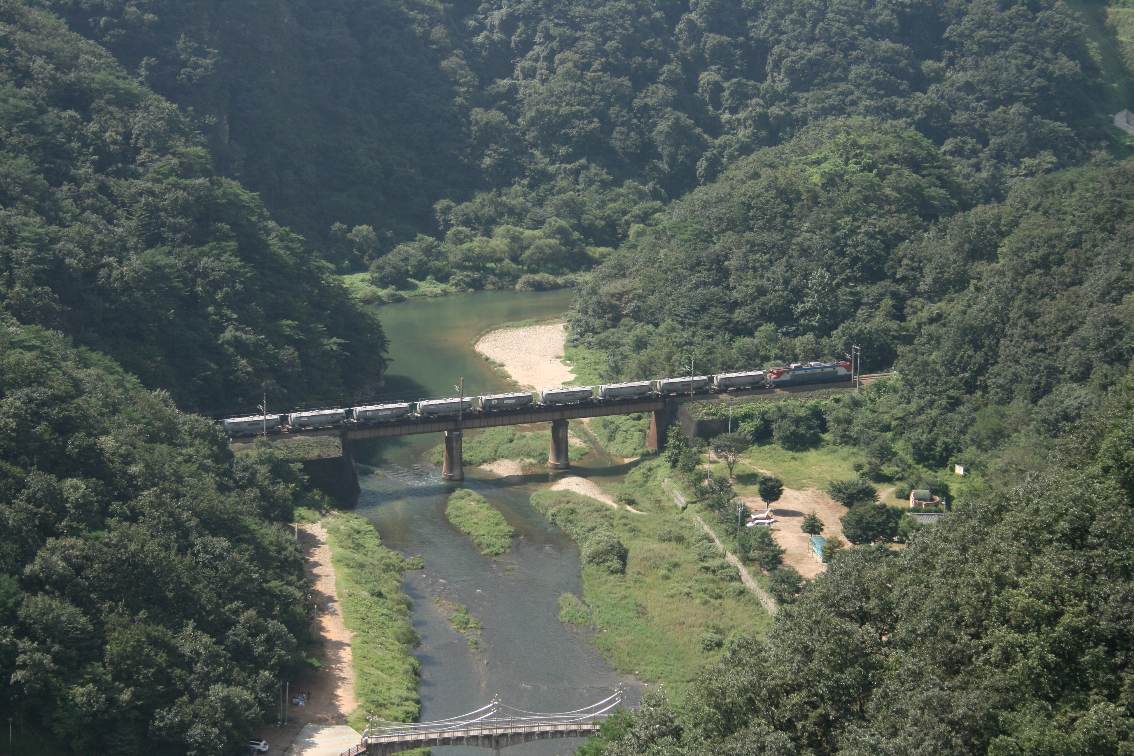 유난히도 무더웠던 주말, 지난 토요일 원주시 지정면 간현유원지에 있는 "소금산"에 다녀왔습니다. 어찌나 덥구, 습한지,,,,산행시작하자마자 곧장 온 몸이 땀에 젖었습니다. 정상까지 약 3.5km로 왕복 7km정도 되는 그리 높지 않은 산이지요. 중앙선선로와 함께,,,,막바지 피서를 즐기려는 사람들로,,,그리고 암벽등반하는 사람들도 보였지요!!!