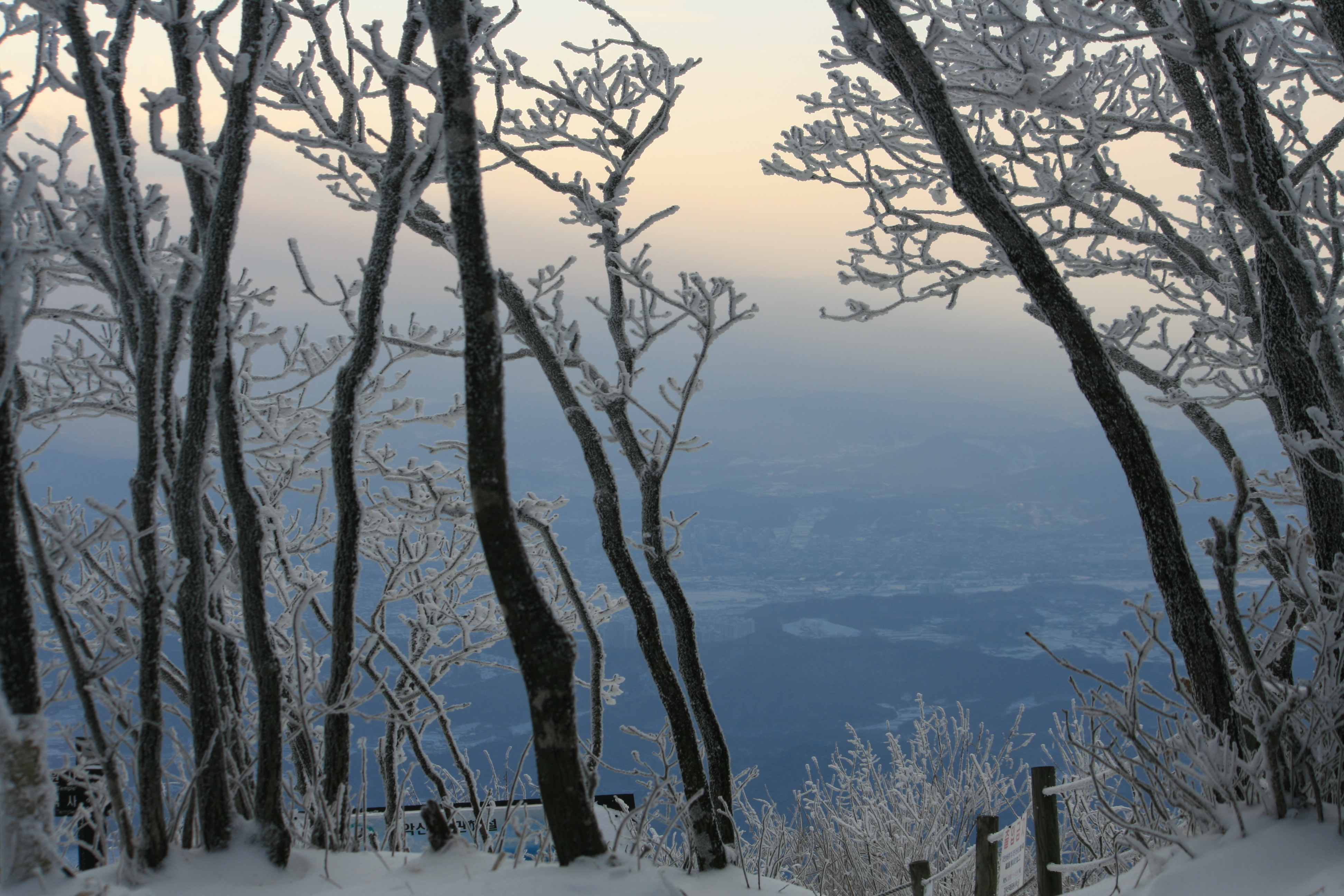2010년이 저물어가는 12월 30일!! 새벽에 내린 눈이 치악산 주능선전체를 하얗게 눈꽃으로 피어나게 했습니다. 점심을 먹고 오후3시 늦은시간 비로봉에 올라갔습니다. 서쪽하늘로는 이미 일몰이 시작되고 있었지요. 눈꽃의 아름다움에 한껏 취한 산행이었습니다.