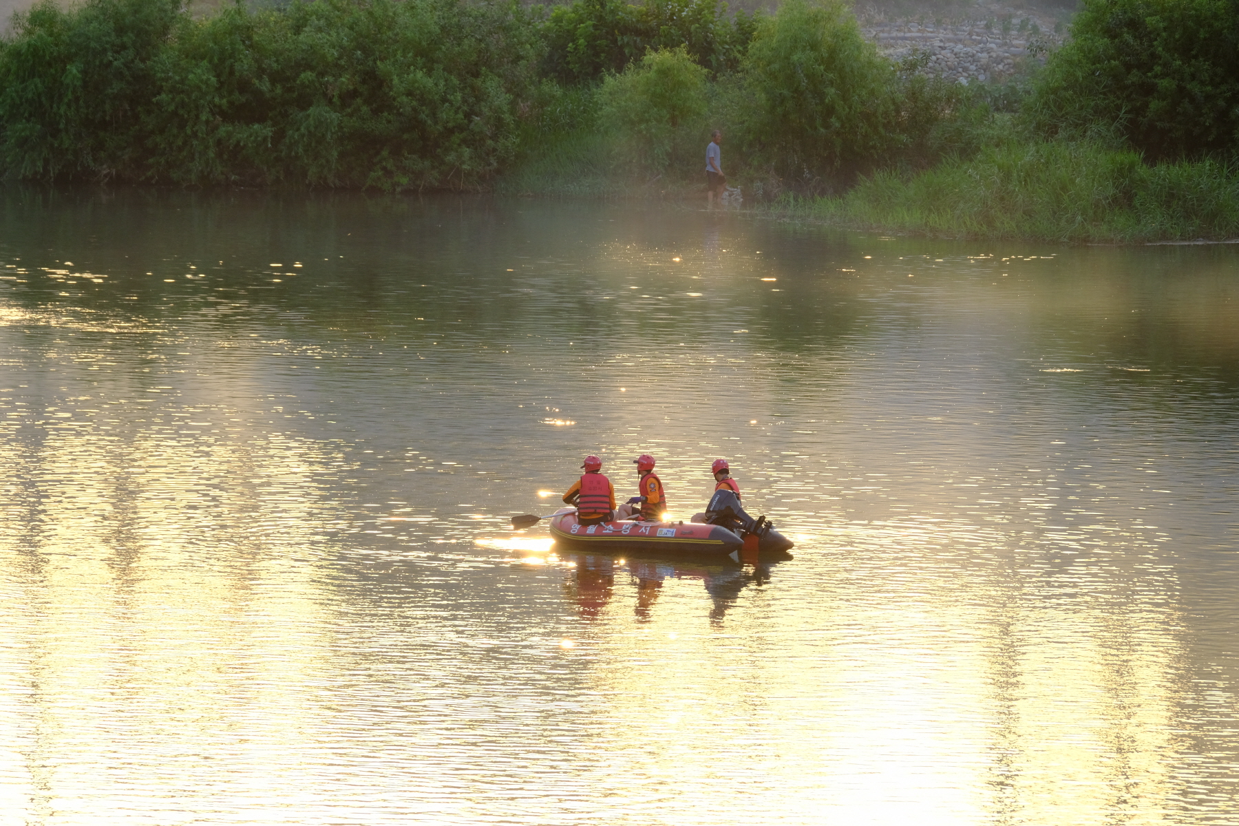 뗏목축제 현장에서 수고하시는 대원모습